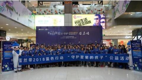 2018年4月2日,第十一个世界自闭症日。为了呼吁全社会关注自闭症儿童及其家庭,为了倡导、呼吁更多的人了解接纳自闭症人士,蓝丝带中国运营总部联合全国千家门店,在蓝丝带人能触及的每一个城市,发起蓝色公益行动——“守护星星的孩子”。